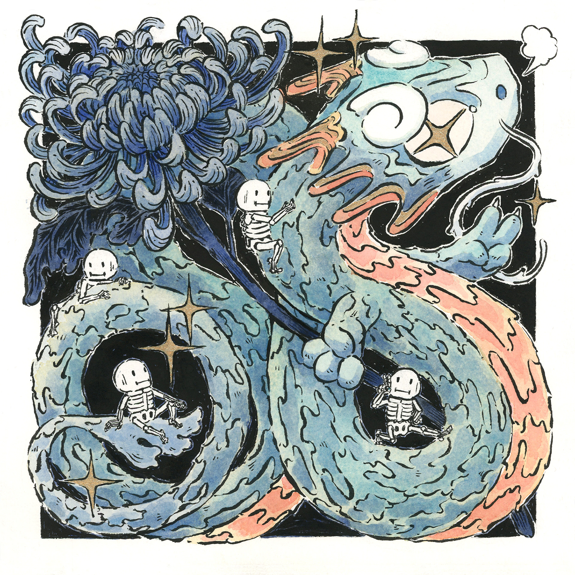Ink & Watercolor painting created for the "Year of the Dragon" group exhibition (2024) at Giant Robot Store in Los Angeles, CA