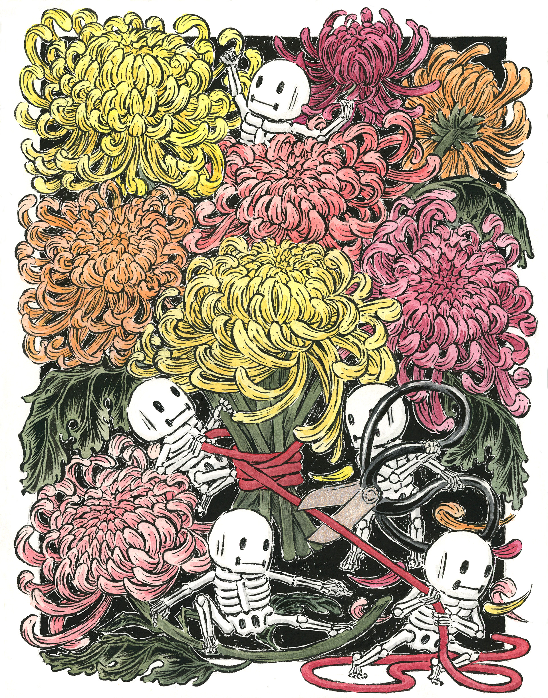Ink & Watercolor painting created for "Gatherings" (2024) a small group show of selected artists at GR2 Gallery in Los Angeles, CA.