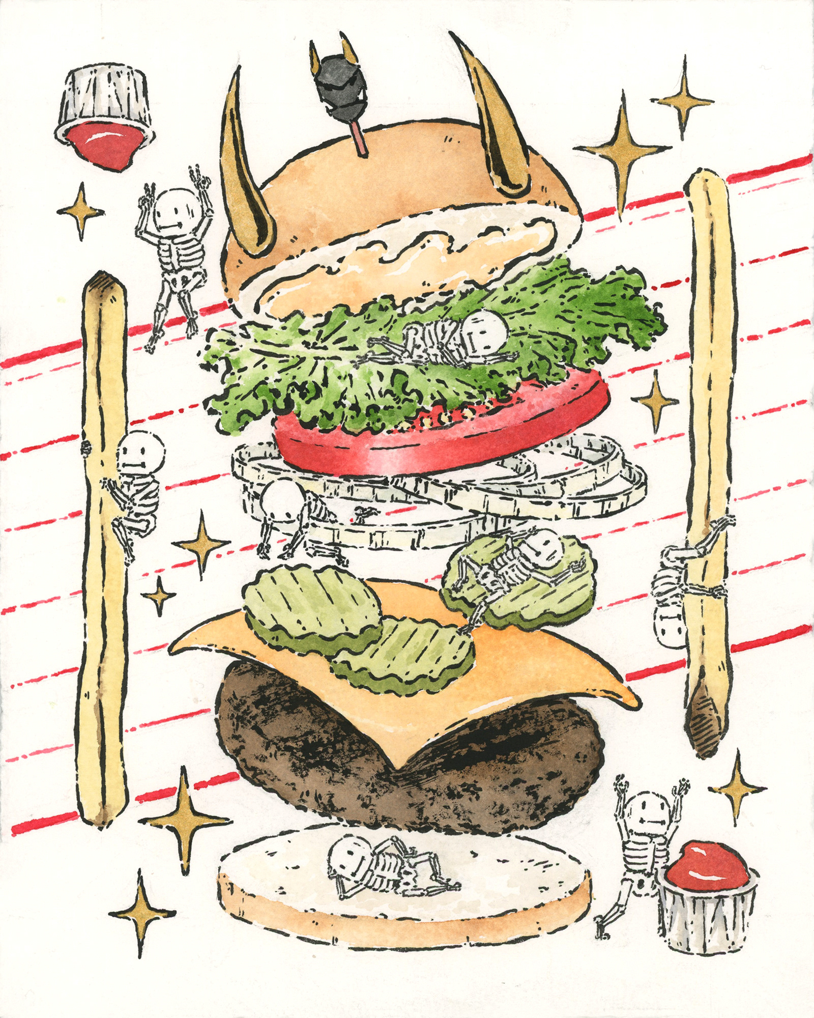 Ink & watercolor painting created for "The Special Feature" (2023) an annual small group show of selected artists at Giant Robot Store in Los Angeles, CA.