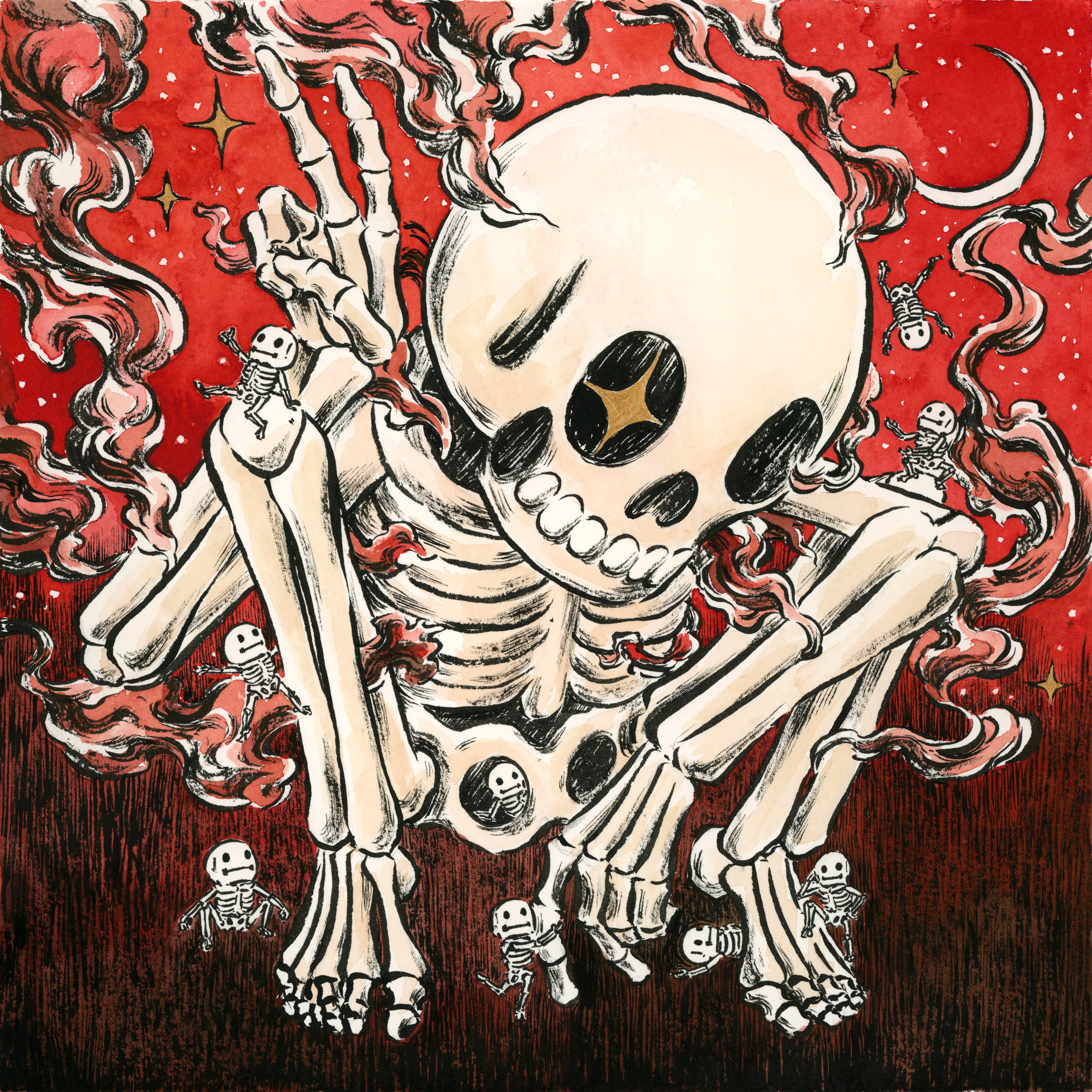 Ink, watercolor & gold acrylic painting created for "Yokai Show" (2021) group exhibition at Giant Robot Store in Los Angeles, CA.