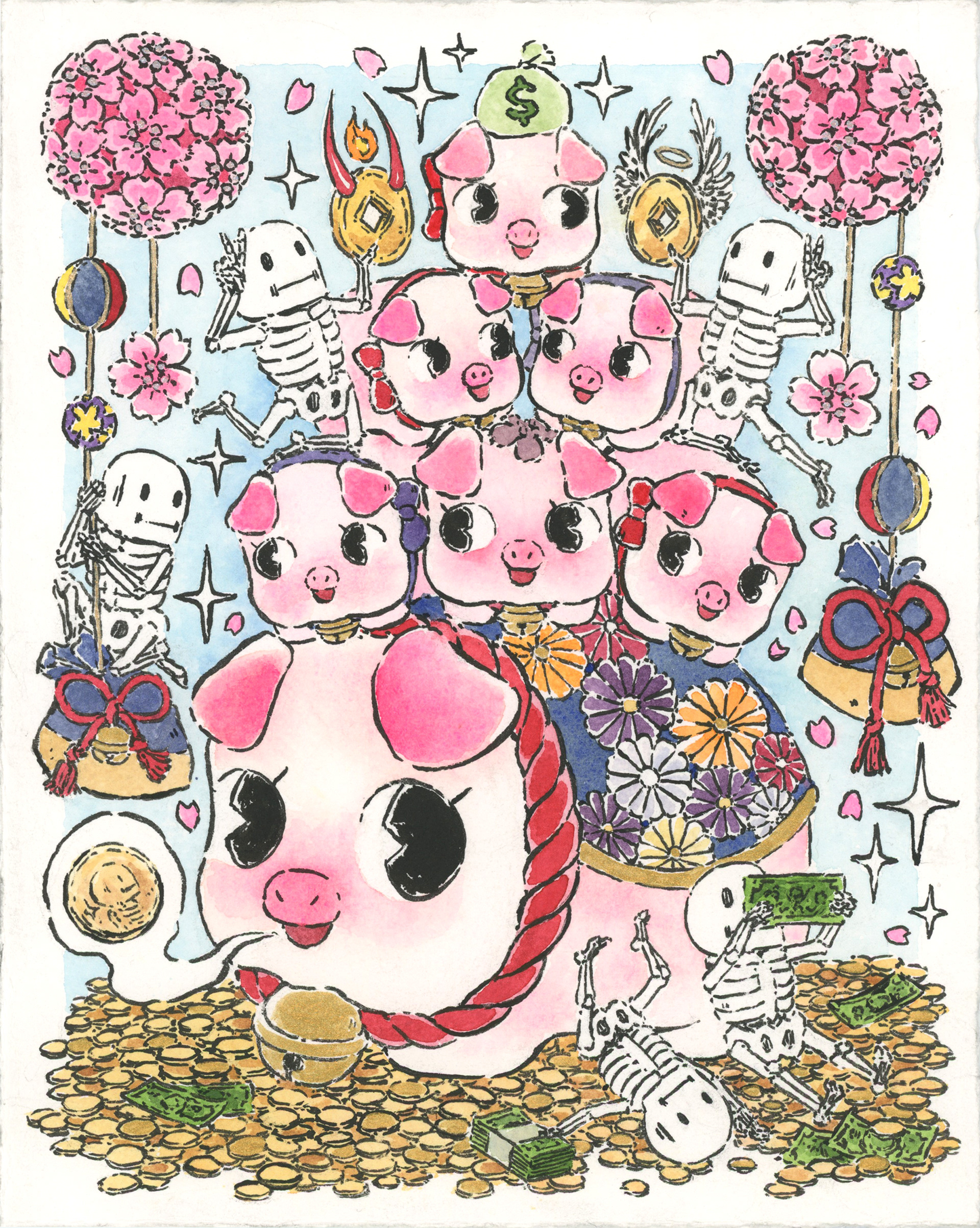 Ink & watercolor painting created for "Convergence II" (2023) an annual small group show of selected artists at GR2 Gallery in Los Angeles, CA.