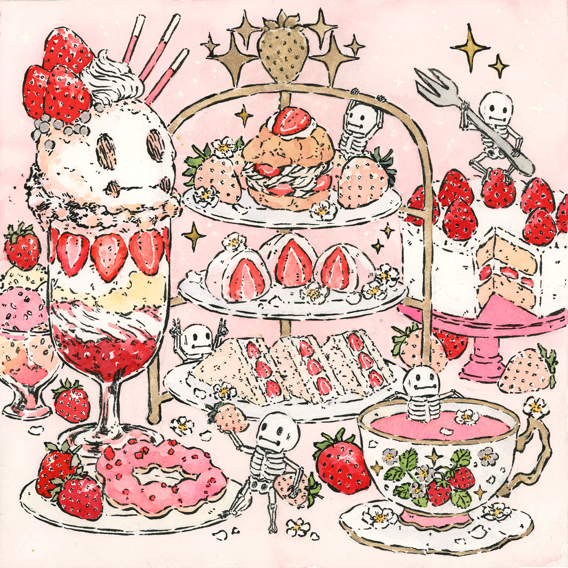 Ink, watercolor & gold acrylic painting created for "Fruits & Veggies: Art you should almost eat" (2022) group exhibition at Giant Robot Store in Los Angeles, CA. Artists were asked to create works themed around any fruit or veggie they choose.